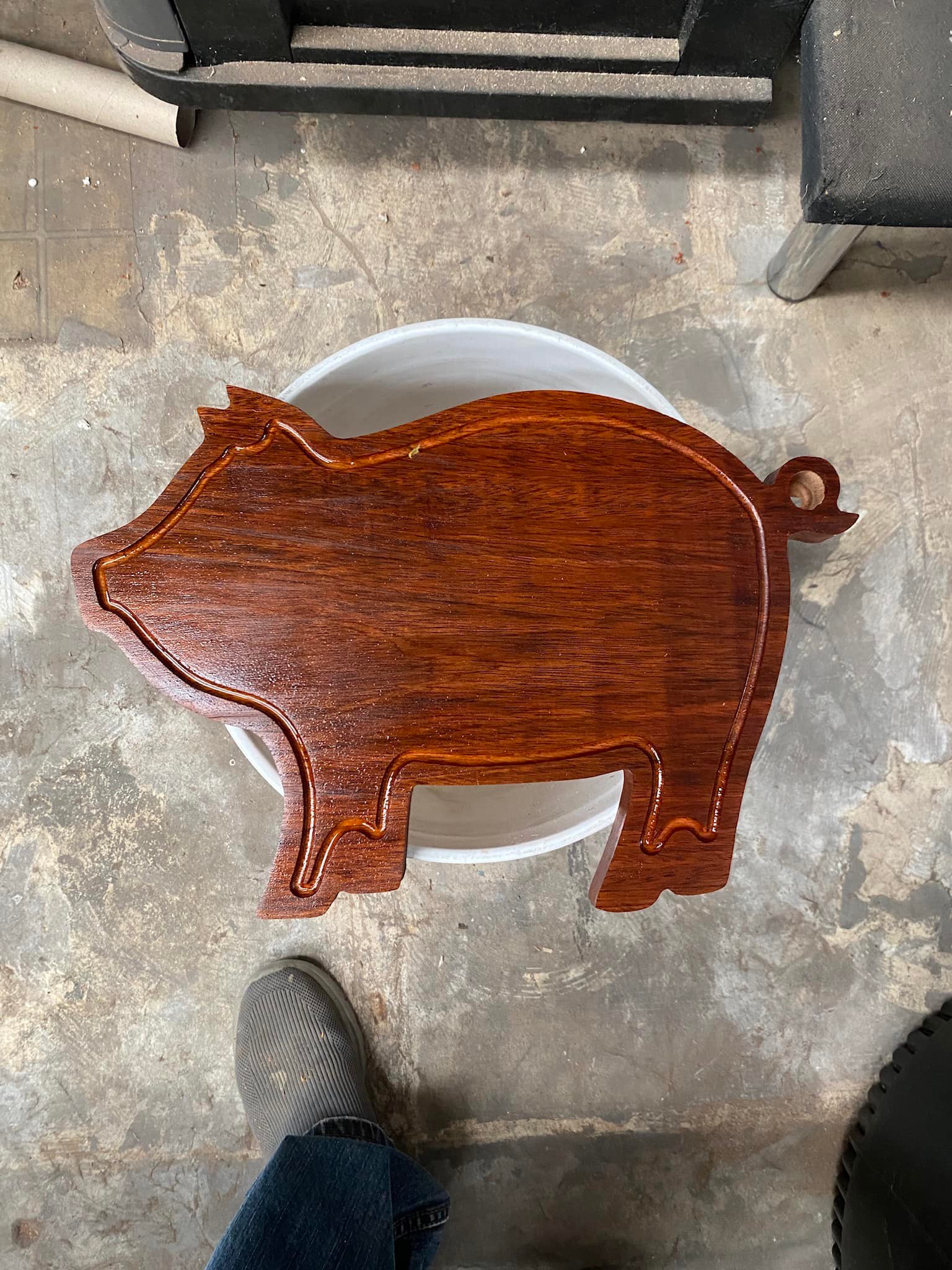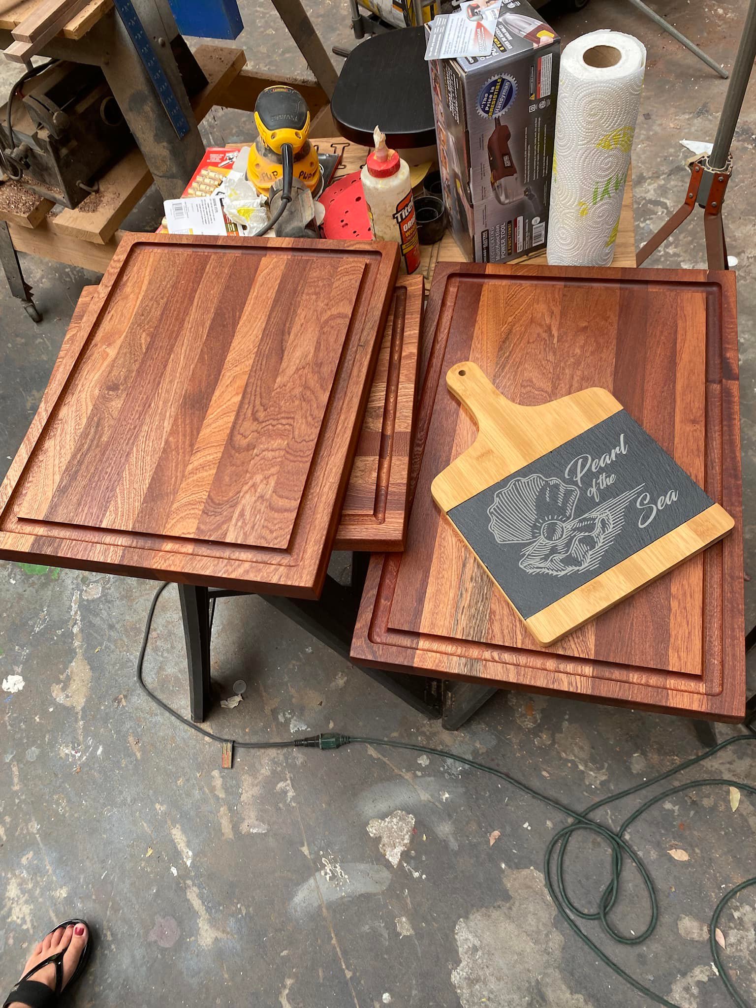 James can create a custom cutting board for you in almost any material, shape, or design—though wood and bamboo are particular favorites.
